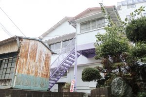 長靴形をした三浦半島の、くるぶしあたりに位置する衣笠駅。JR横須賀線と京急線が接続する久里浜駅のひとつ手前の、ローカルな駅です。徒歩1分図書館と銘打たれていたそこは、ほんとうに駅からすぐの路地を入ったポケットのような場所、元は工場の社員寮だったというアパートの2階にありました。2面が窓になっていて、明るく静かです。