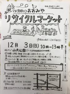 第100回 おおみや リサイクルマーケットが開催されます!! 日時 2017年12月3日(日)午前10時~午後13時半 (雨天は12月10日順延となります) 会場 山丸公園(さいたま市民会館おおみや 西隣) 主催 おおみ […]
