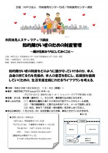 【終了】1/28(土)開催 市民後見人ステップアップ講座・知的障がい者のための財産管理