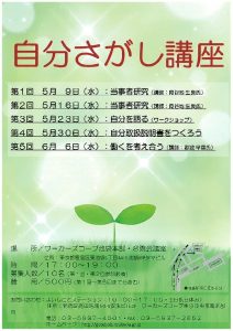 「自分さがし講座」毎週(水)5/9、16、23、30、6/6 受講生募集中! 自分に合った仕事をする、創る、そのためには自分の特長をよく知ろう!「誰もが働くにつながる」共育プログラムのご案内です。 ◆第1回5月 9日(水 […]