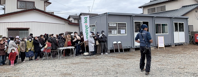 「11月の初めに、ピースボートとパル福島で炊き出しが始まり、サロンのお手伝いに入ってパルシステムの義捐金で物資の援助をやってきました。果物や野菜の提供は今後も続ける予定です。」
