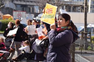 入管施設の前で抗議を行うメルバンさんの母親(写真提供/鎌田朝日)