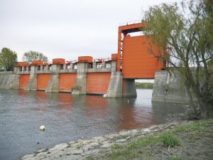 荒川放水路にかかる「旧岩淵水門」。大正13 年完成。荒川が氾濫しても、