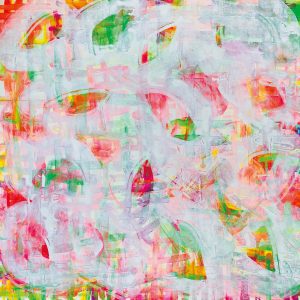 記号や模様を重ねた独特な絵画空間が特徴です。