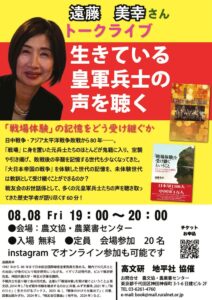 【終了】2025年8月8日 遠藤美幸さんトークライブ「生きている皇軍兵士の声を聴く」