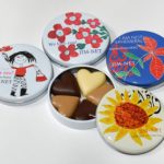 一口500円の募金をしてくださった方へチョコレートを1缶プレゼントしています。